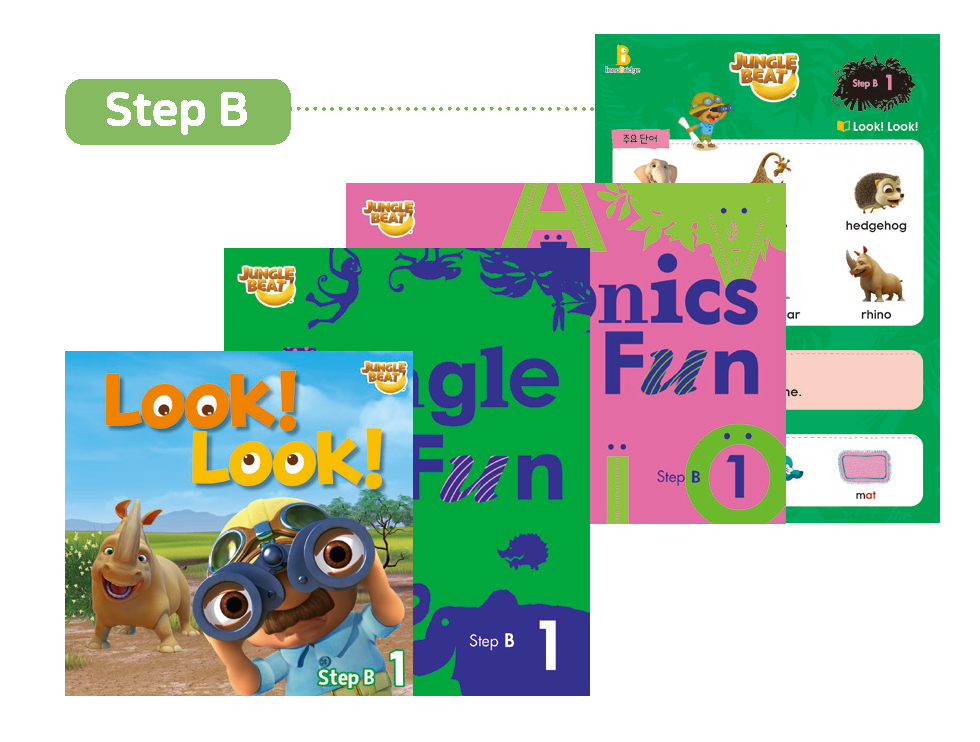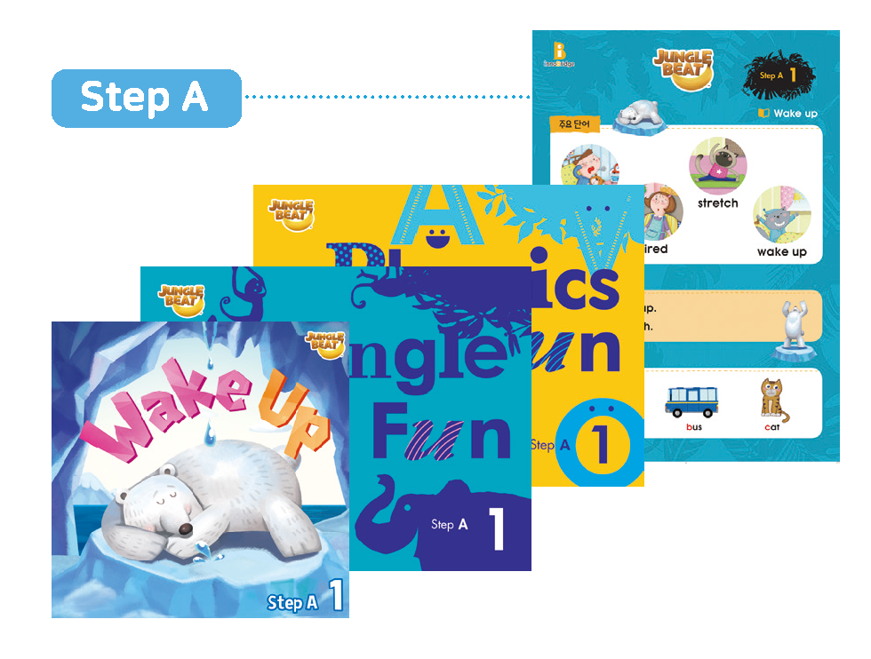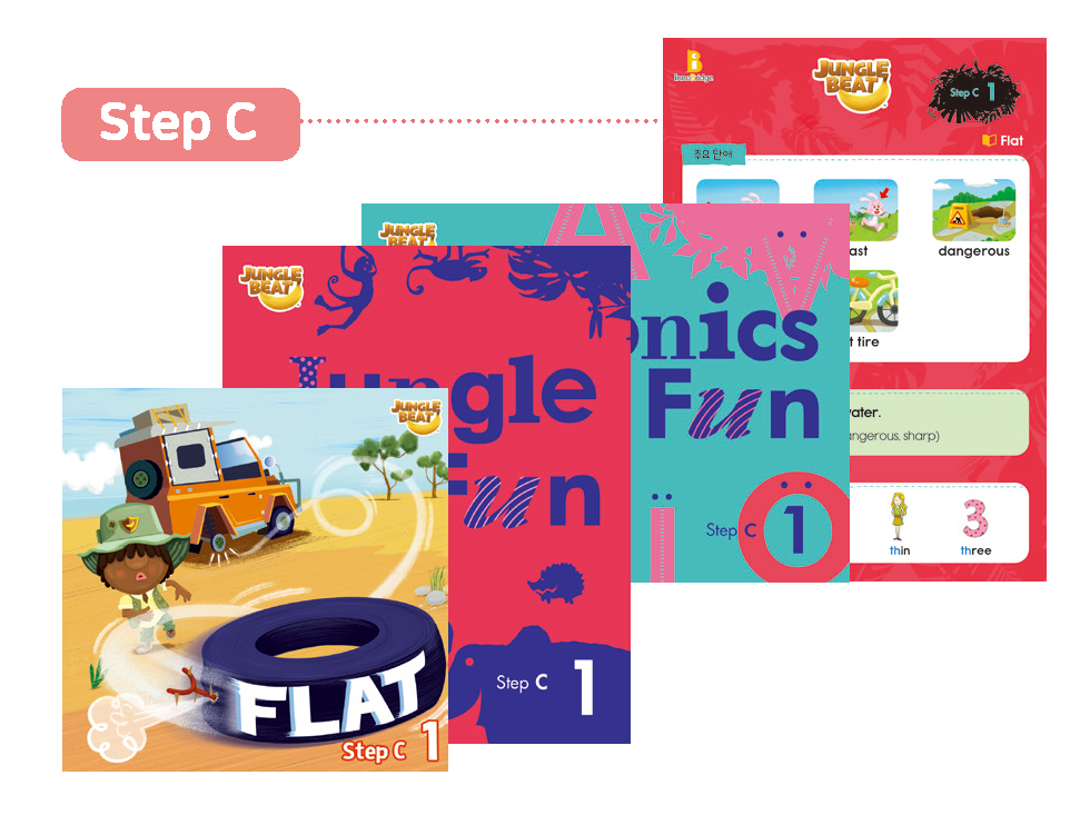 | Step A, B, C | 스토리북 1권, 정글편 1권, 파닉스편 1권, 월차트 1종, 교실영어, PINOPLAY앱 |